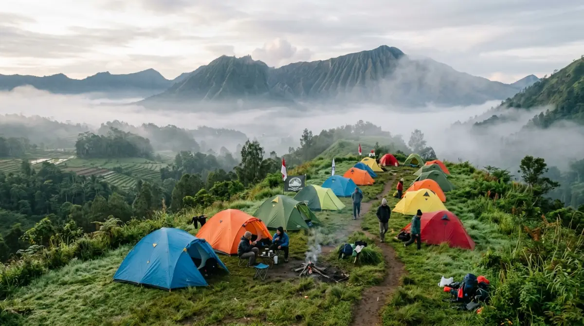 Harga camping ground sangat bervariasi — dari sewa lahan mandiri mulai Rp25.000 hingga glamping mewah di atas Rp2.500.000 per malam.