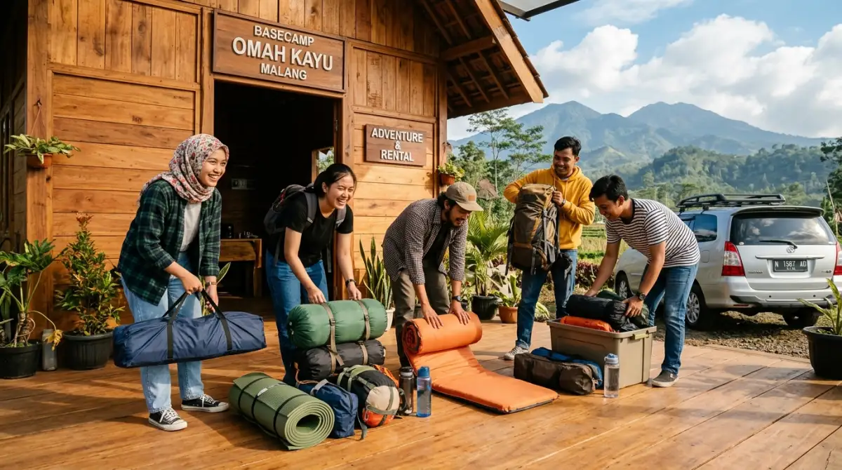 Penyewaan tenda kemah profesional — tinggal datang, alat sudah siap, liburan bisa langsung dimulai.Pernah nggak sih kamu merasa waktu berjalan terlalu cepat? Tahu-tahu sudah hari Jumat lagi, sementara tumpukan revisi laporan di meja kerja rasanya nggak berkurang sama sekali. Otak rasanya sudah mendidih, dan butuh banget pelarian ke alam bebas. Bayangan menikmati sunrise keemasan dari perbukitan berselimut kabut di Malang atau Batu pasti langsung melintas di kepala. Namun, semangat itu sering kali mendadak kempis begitu sadar kamu nggak punya perlengkapan kemah.